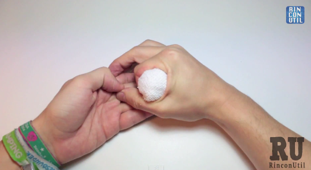 Simplemente tienes que recortar el trapo, y hacer una bola con el. Después, con la ayuda del hilo, dale las vueltas que sea necesarias hasta que formes una buena pelota. Una vez hecho esto, estarás preparado para poder impregnarlas en alcohol.