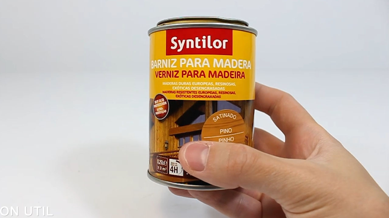 Hecho esto, ya podemos proceder a darle un toque de color a nuestra casa. En mi caso, he utilizado este barniz de la marca Syntilor, de un color Pino satinado, que va a dar una capa de proteccion perfecta para la madera, y ademas, le añadirá un toque de color.