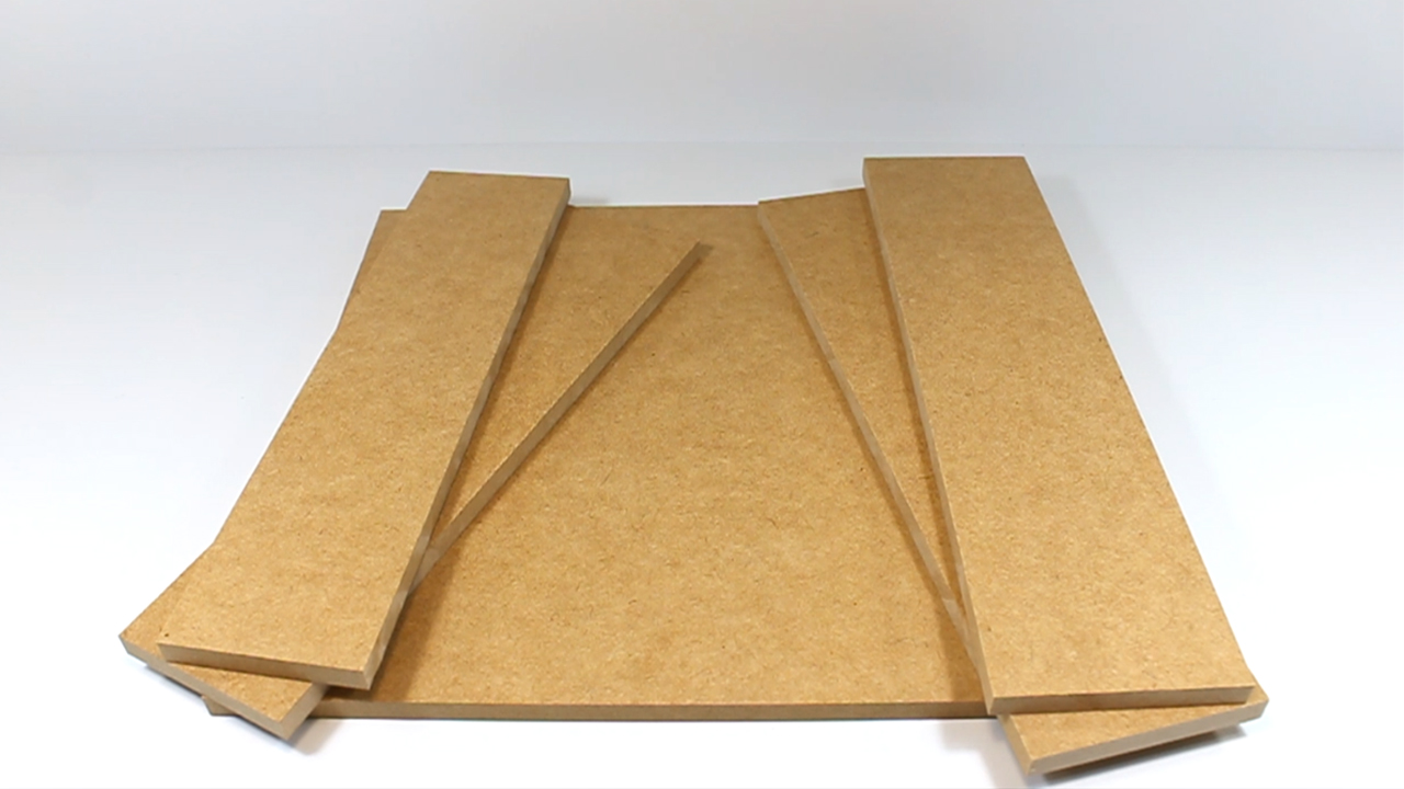 Para el siguiente paso, he recortado estos pequeños trozos de cartón, que son de la misma altura a la que está el cartón grande de la base del cajón.