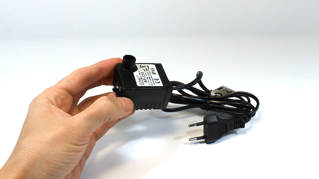 Para hacer el sistema acuático, vamos a utilizar una pequeña bomba de agua. Esta, es de la marca, Altadex (Aquí información del producto). Se utiliza comúnmente para pequeños estanques, y nos viene genial, porque consume muy poco, pero tiene un caudal de agua suficientemente bueno para lo que necesitamos.
